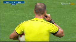 但显然他遇到了一个(或者两个)更加有耐心的视频助理裁判员,双方通过耳机交流了整整两分多钟,期间比赛暂停,主裁判一人独自伫立在场中央,成为万众瞩目的焦点↓↓↓