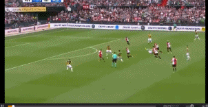 下半场54‘04’‘,维特斯队员突入禁区,被费耶诺德放倒,裁判示意比赛继续,费耶诺德在20秒内反击进球,但被判越位在先。