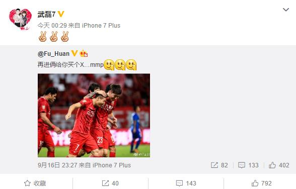 武磊赢进球赌约傅欢购4台手机 球迷留言亮了|图