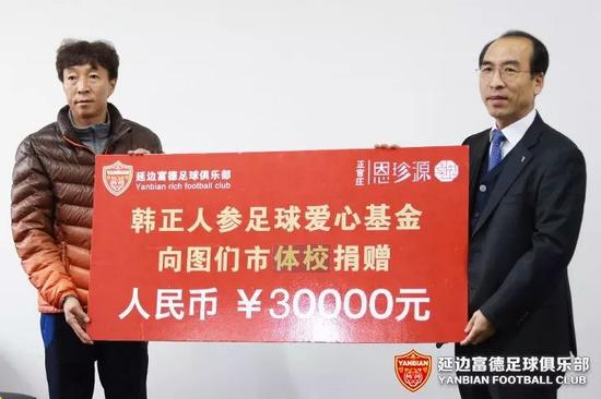 延边富德俱乐部参加爱心捐赠 为业余体校捐款三万