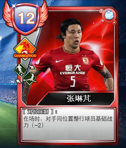 在《绿茵纵横》中,张琳芃的评级是红色“精英”。在游戏中可以放置于中场和后场两个位置,初始技能为[对位压制]:在场时,对手同位置整行球员基础战力减少2点。这正如他在防守型中场和后卫线上防守铁闸的表现,可以说是球队稳固防守的坚实屏障