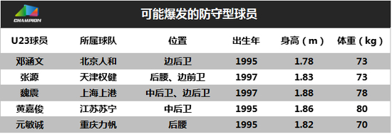 本赛季的几匹黑马都有一个防守型U23球员,比如亚泰的何超、贵州的闵俊麟,重庆力帆的元敏诚却在竞争中输给了同乡南松,只获得了3次出场机会。