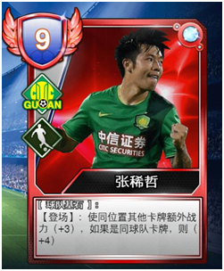在《中超杀》中,张稀哲具有的技能是[球队基石]:使同位置其他卡牌额外战力+3,如果是同球队卡牌,则+4。在卡牌觉醒后,基础战力获得提升