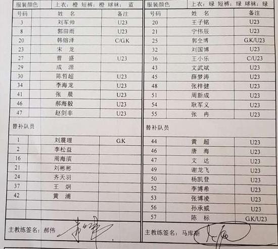 按照足协的新规要求,预备队联赛每场比赛必须同时在场5名U23球员,也就是全场比赛,场上至少要有5名U23球员。鲁能与国安的预备队联赛,鲁能有8名U23球员首发,分别是李海龙、刘军帅、曹盛、张晨、郭田雨、郝海毅、陈哲超、赵剑非,三名非U23球员是韩镕泽、宋龙和成源。替补席上,鲁能并没有安排U23球员进入名单。