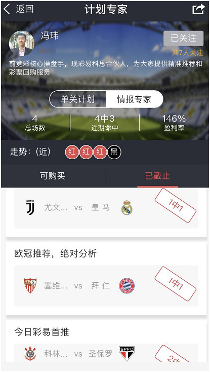 另外这位大神级专家想必大家都认识,一路连红的:冯伟老师,前中国竞彩网核心操盘手,这个单位也就是中国竞彩行业最权威的单位了,而竞彩中心操盘手一般人很难做到这个位置上,需要具备的能力已经超越了我们的想象力,可能会觉得有些吹,但事实确实是这样,而冯伟老师也是彩易科思的创始人,今天冯老师还会为大家献上重推稳胆,带大家红单,锁定冯老师不会错!