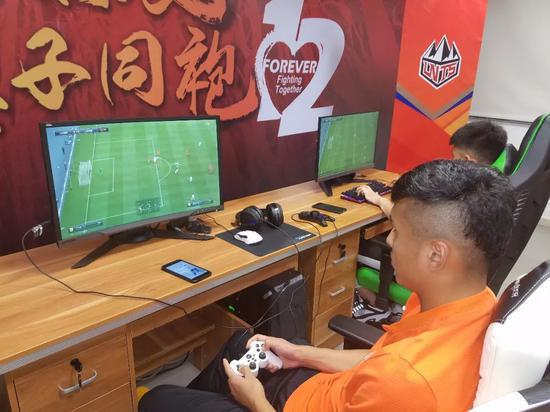 活动首先由来自北看台青年球迷会的8位电竞选手组织了一场FIFAonline项目的对抗赛,比赛采取单循环排位的形式,获得胜场数前两位的选手将获得挑战齐天羽的机会。