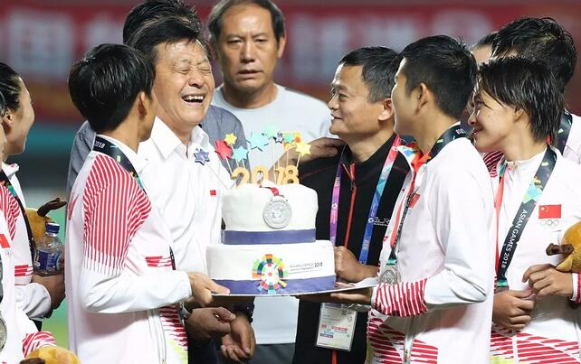 中国女足与日本女足这场亚运会决赛在巨港进行,直到比赛进行到最后几分钟时,阿里巴巴董事局主席马云才冒着大雨匆匆赶到赛场,赛后马云为中国女足颁奖,并且送上了一个特别订制的蛋糕。据了解,马云此次为到现场为中国女足加油,并非临时起意,而是亚运会前就和中国足协党委书记杜兆才相约——如果中国女足打入亚运会决赛,他一定到场助威。