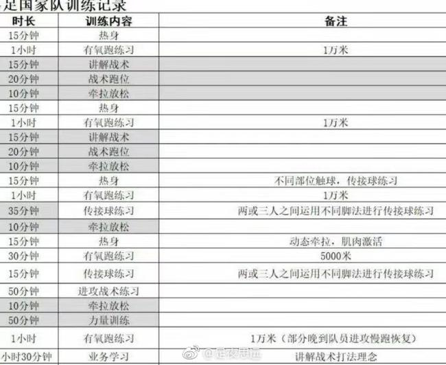 昨晚传出的国家队训练图上显示,队员每天要跑4个一万米,还有1个5000米的有氧跑训练。这样的高强度训练有些不符合足球运动规律。对于这样的传闻,足协表示并不属实,据《体坛周报》记者消息,足协人士称这个训练计划完全与国足训练营无关,这一行为完全是妖言惑众,要严查是谁散布的谣言。