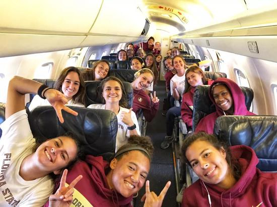 FSU女足有数十人的教练和保障团队,每一次客场出征比赛的教练团队和工作团队也有十余人,除了主教练、助理教练、体能教练、队医、数据分析师、学习辅导员外,还有两个媒体管理,其中一个负责在球队的社交媒体会图文直播每场比赛,进球队员都会有特定的照片和数据实时呈现。