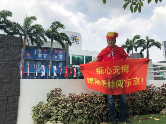 图说:来自江苏盛泽的著名球迷乔老爷等中国龙之队球迷,来到吉隆坡给中国国奥队助威,并前往亚足联办公地支持中国申办2023年亚洲杯。
