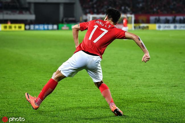 广州恒大:第42分钟,保利尼奥分球,杨立瑜禁区右侧低射破门