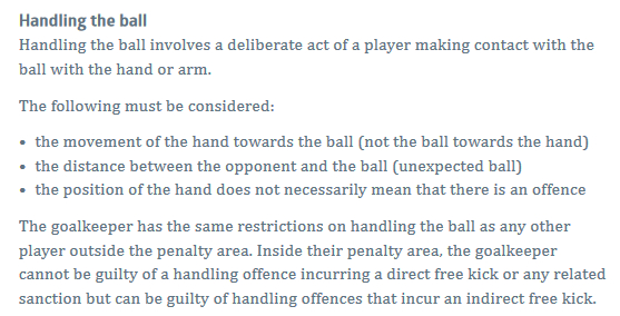 之所以出现很多相似手球却判罚不同的情况,根本原因在于裁判对规则以及所处情况的认知不同,我们翻出了《足球竞赛准则》的最新版,其中对判定故意手球的准则是这样的:
