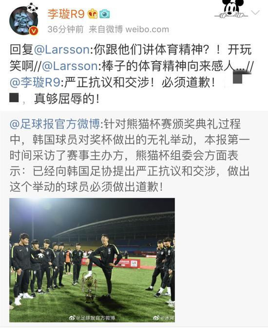 韩国国青队员侮辱熊猫杯的消息在互联网上传播后,引来了各界的一片愤慨。
