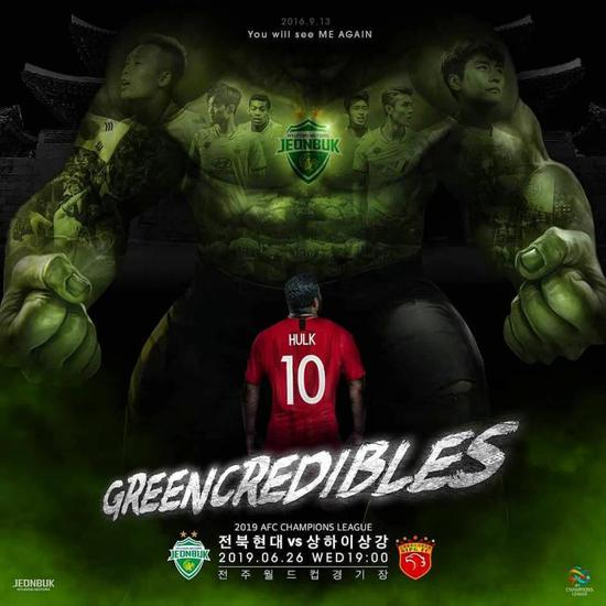 有趣的是,不光是本土球员,就连外援胡尔克,也被佩雷拉的心理调适给激发斗志。原来,全北现代的官方社交媒体INS发布了一张海报,里面绿巨人形象做得很大,胡尔克的形象特别小,“我觉得很有趣,把我做得竟然那么小,这对我来说特别有动力。我来到球场就感觉特别有信心,特别有动力证明自己。上次在这里,我们输了,这次我们赢了。”