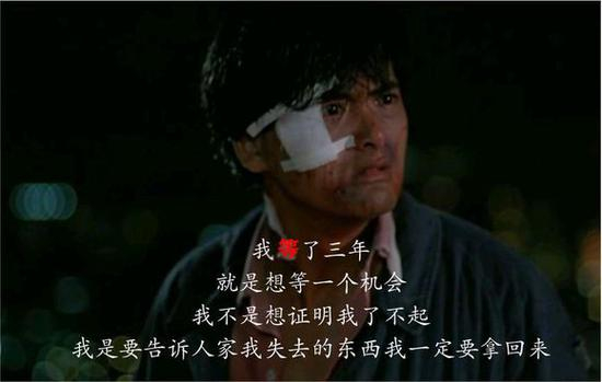 这段话,原本是周润发在电影英雄本色中的台词:“我等了三年,就想等一个机会!我要争一口气,不是要证明我了不起,我是要告诉人家,失去的东西我一定要拿回来!”