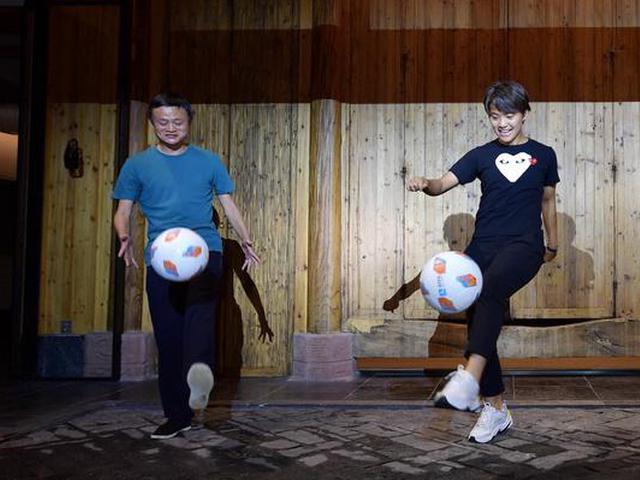 马云与王霜比拼颠球 将十年十亿支持中国女足