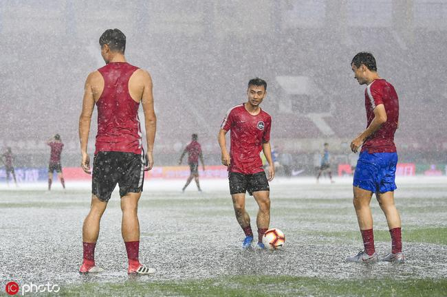 骤降暴雨!航海体育场能嘡啷水 这场地适合踢球吗