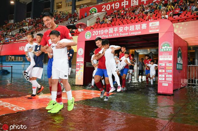 赛前由于郑重突降暴雨,使得建业主场航海体育场草地秒变水塘,多处被水淹没。因此原本定在19:35分的比赛连续2次被延顺,再推迟一小时后才正常开球。球员通道内的积水已能淹过脚踝,赛前仪式两队队员只能抱着小球童们进场。