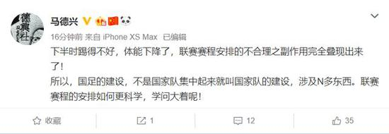上半场打进6球,下半场只打进1球,国足虽然7比0大胜,但是整体的表现并没有达到预期。从下半场的表现看,国脚们的体能并不理想,著名记者马德兴分析这归结于联赛赛程的安排,同时这也成为未来比赛的一个隐患。