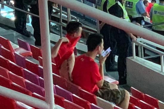 球迷区的看台上、安检外的厕所里、支撑柱的角落处,到处是临时更换装束的球迷。他们当中很少有人操持粤语,显然,这些都是从全国各地、哪怕在工作日也不辞辛劳蜂蛹而穗的国家队死忠——然而这份赤心,还是被告知需要一件外衣的仪式感来证明。