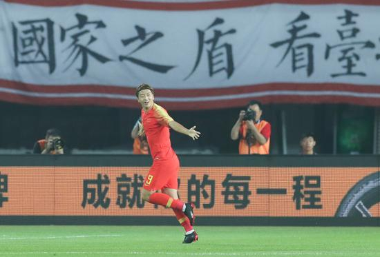 杨旭庆祝进球。