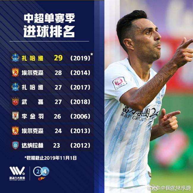 果不其然,扎哈维在11月份就做到了,从一个数字分析来看,中超单赛季进球排行前五中有三个是最近三年创造,当然这里不能忽视李金羽,大羽当年是在联赛只有28轮赛制的情况下创造的纪录,就鲁能那年的统治力来说,如果切换到30轮赛制,李金羽难保不会把自己的纪录延长。