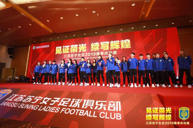 北京时间11月17日女足超级杯比赛,苏宁女足2比0完胜大连女足夺冠,取得第四冠,也就此包揽了2019赛季中国女子足球所有冠军,实现大满贯。江苏苏宁俱乐部在19日举办了主题为“见证荣光,续写辉煌”女足赛季庆功宴,苏宁控股集团董事长张近东出席了活动,并表示:“江苏苏宁女足在杰斯林主帅及教练团队的指挥下,在全体队员‘执着拼搏、永不言败’的努力拼搏下,在管理团队以及后勤团队的出色保障下,共同造就了队史上最辉煌的赛季,创造了江苏足球、苏宁足球的新纪录。”