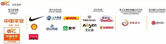 2019赛季,中超共有14家赞助商,官方冠名商中国平安;官方合作伙伴共有包括耐克、上汽集团、DHL、壳牌、崂山啤酒、蒙牛和天猫在内共7家;4家官方供应商分别为泰格豪雅、百岁山、艾比森光电和东鹏特饮;官方全媒体转播合作伙伴为体奥动力;官方图片合作机构东方IC。与2018赛季相比,仅蒙牛一家为新增赞助商。