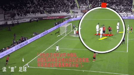 亚洲杯上,中国队角球防守时,也是区域结合盯人。而韩国队那次也是左侧开出角球,金玟哉在身前同伴形成挡拆配合的情况下,从中路突然杀出,甩开了张琳芃的盯防,又抢在控制前点区域的赵旭日的身前完成破门。