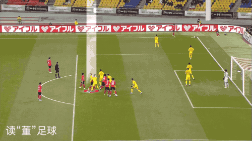 而控制前点的董学升虽然瞬间扭头观察到了韩国队几名冲抢队员的情况,也做好了随时起跳的身体姿态准备,但连续的几次原地跳跃却成为了隐患。特别是董学升原地连续跳的第三下,看似身体在保持时刻的运动状态,但最后一跳幅度很大且节奏较慢,在对方的朱世钟已经开出角球的时候,无法完成向前的及时起跳争顶,只能原地起跳,所以被从后面提前起跳又有制空滑翔的金玟哉,占据了制空权。