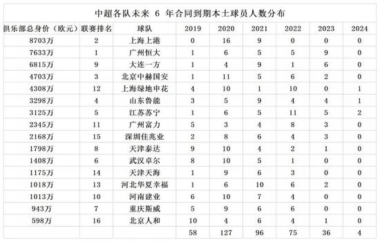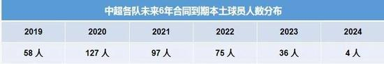 站在足协的角度,颁布限行令的最大初衷在于为俱乐部减负、打击职业联赛非理性消费,从而确保联赛可持续发展。而 “限薪令” 的实施在一定程度上的确能抑制球员为获得一份大合同而谋求转会的欲望,同时也有助于维系联赛竞争格局的平衡和秩序。值得注意的是,目前中超 16 队中,2019 年与所属俱乐部合同到期的球员为 58 人,到了 2020 年,这个数字就将激增到 127 人,2021 年合同到期球员人数为 97 人,其中不乏一些国足主力球员,而此后三年,合同到期球员人数将呈聚集大幅下降的趋势。可以说,控制好未来三年职业联赛体系中合同到期球员新合同的签约,并加以切实且强有力监管,国内球员虚高的年薪就很有希望降下来!