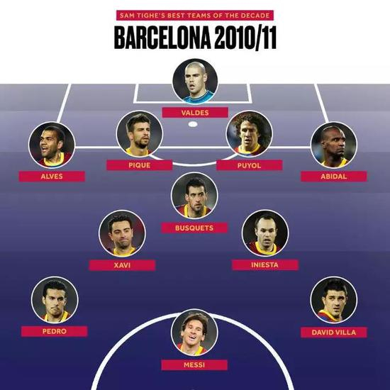 2010/11赛季拥有哈白布+MVP的巴塞罗那,也被视为近10年甚至足坛历史上的最强球队。