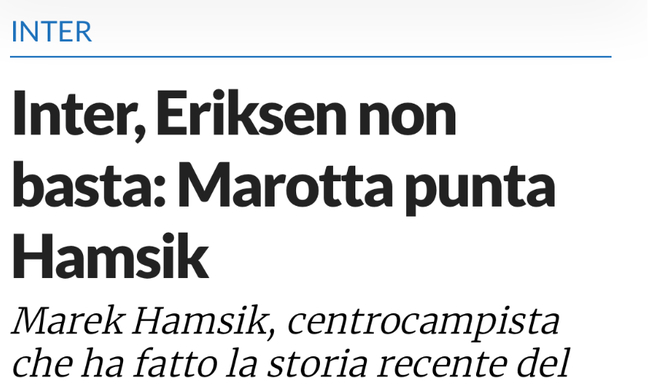 据意大利媒体“footballnews24”报道,大连人外援哈姆西克可能是国际米兰的引援目标。该媒体表示:“孔蒂的意志是众所周知的。教练想要另一名中场球员来加强国际米兰的中场,来自托特纳姆热刺的埃里克森的到来可能还不够。马洛塔分析的资料会很多,从这位前尤文CEO的名单中,会出现哈姆西克的名字。”