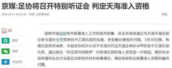 《北京青年报》报道称,足协初步计划于本周内约见天海及候补升甲的各中乙俱乐部代表,通过类似 “听证或问询程序” 对各俱乐部的准入资质进一步核验。随后协会将有望结合此次会面及此前相关材料收集情况,确定各级职业联赛准入资格的最终归属。此外,中国足协为切实做到秉公断案,还准备引入 “第三方意见” ,也就是征求包括职业联盟筹备部门、法务、财务、审计甚至新闻媒体层面的意见。