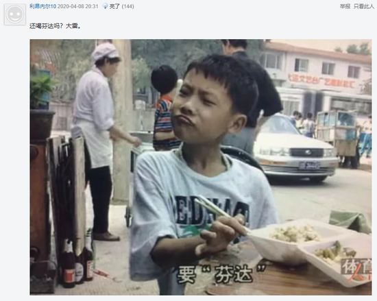 还有网友上演了一出“回忆杀”,找出了一张当年央视为王大雷拍摄的纪录片截图,问王大雷:“还喝芬达吗?大雷。”王大雷给出了一个非常幽默的回答:“芬达不喝了……到现在没给广告费。”