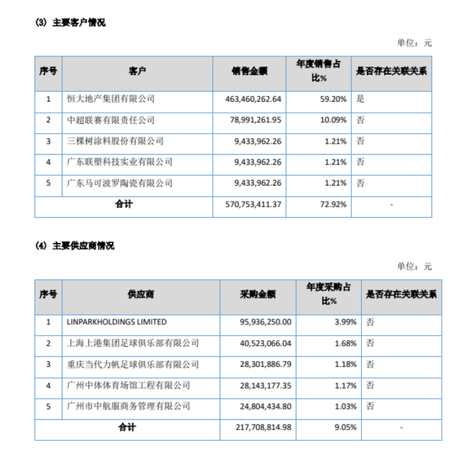 而年报中出现的供应商LINPARKHOLDINGSLIMITED,应为高拉特的经纪公司,2015年的年报中也曾出现相同公司名称,应该是恒大召回高拉特后付出的肖像权费用,高达9593万。按照中国足协2018年底出台的四大帽政策,恒大在投资帽、亏损帽方面全部超限。