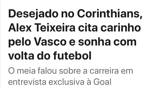 对于特谢拉和科林蒂安、瓦斯科达伽马的转会传闻,他表示:“我听到的都是来自媒体的报道,我知道我的经纪人会收到询价,但他不会把这些东西给我,直到变得具体为止。我喜欢专注于我在这里做得事情。是的,我那时听说了很多关于科林蒂安的事情,就像我经常听到关于瓦斯科的事情一样,瓦斯科是我一直非常喜欢的球队,但是直到它变得具体起来,我才开始接触它。”