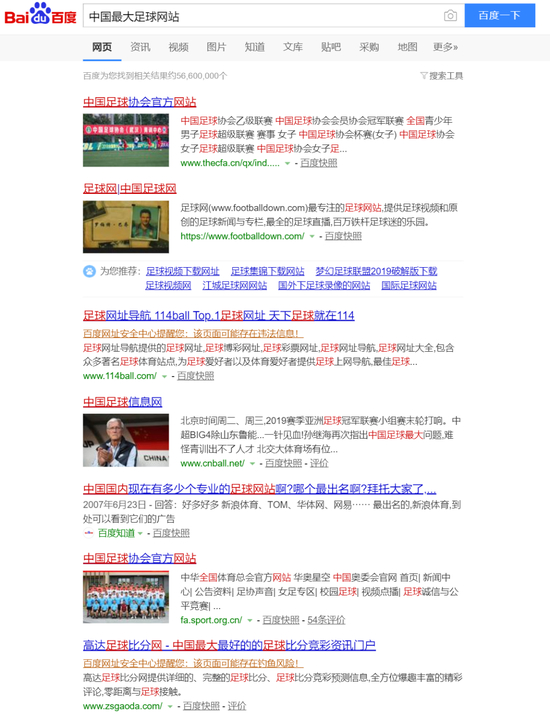 突然抛出这个看似很直给的问题,你的第一反应会怎样作答?百度君的答案实则有些尴尬,搜索引擎呈现出来的,除了中国足协的官网,剩下的基本就是赌球网站了……(第二和第四个搜索结果点进去实际也是足球赔率网站)
