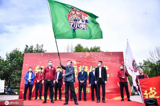 昨日下午,“新辽足”、“辽小虎”的授旗仪式在沈阳奥体中心外场足球场举行。阳光普照之下,此前一直托管着“旧辽足”的辽宁省体育局,正式笑眼咪咪地授予辽宁沈阳城市足球俱乐部“新辽足”的赤艳大旗。