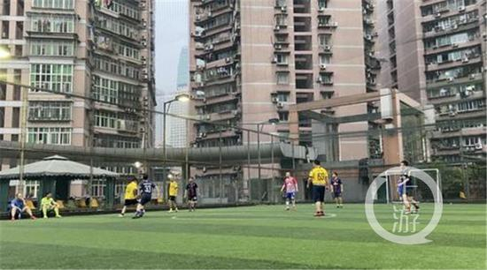 家住上清寺的足球爱好者范永斌已在这里踢了三年,几乎每周都会组织同事来一场友谊赛。他表示非常享受在楼顶踢球,一是视野开阔,空气好,而且更加“刺激”——会有一种球随时可能飞出去的错觉。有时向上望去,会发现有些小区居民也在自家阳台上看球,这些“空中”的“观众”会让自己踢得更起劲。