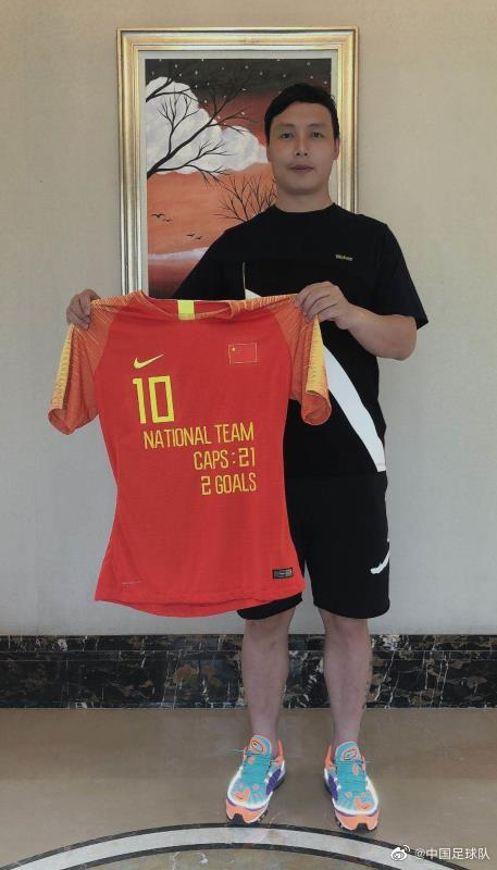国足官方向陈涛周海滨送纪念球衣 印有出场+进球数