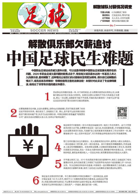 ◆《足球》:职业足球圈的被欠薪现象始终屡禁不止,从维权的角度,您首先想提示球员的是什么?