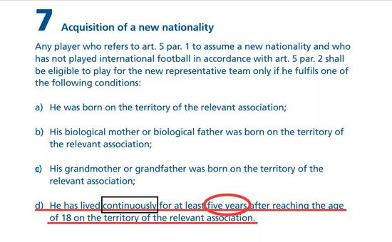 无血缘球员归化并代表新会员协会国家队出场,涉及到两大问题,首先是取得“国籍”。在高拉特申请加入中国国籍的问题上,这个“183天”的时间概念或许有所帮助。但在国际足联的“会籍”认证方面则是毫无意义,从头至尾翻遍国际足联的章程规定以及其他各种文件规定,根本就见不到“183天”的字样。所以,在国际足联是否批准转换会籍的问题上,根本就不没有什么“183天”这个时间概念。