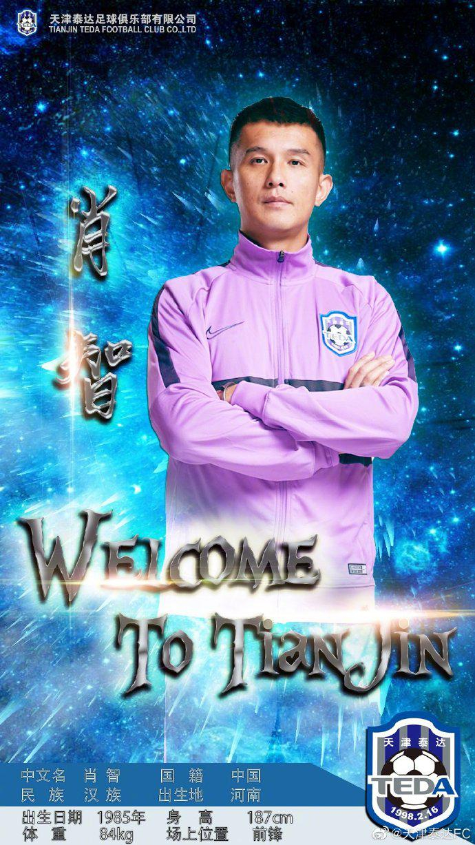 泰达官宣2强援加盟 国脚中锋肖智+前天海后卫来投