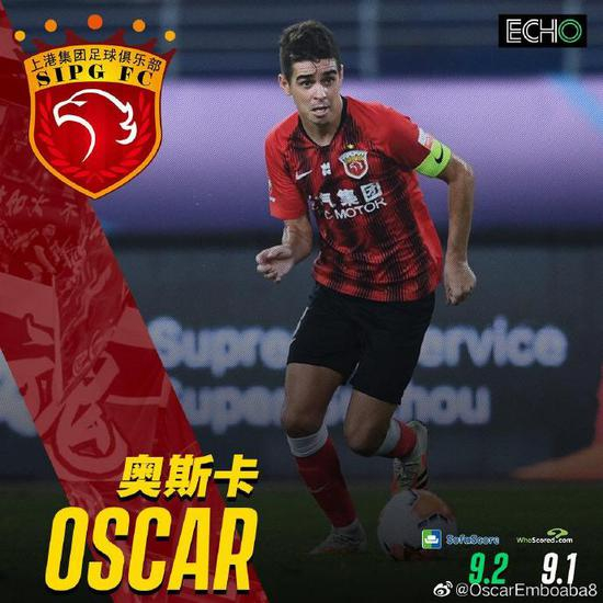 赛后,奥斯卡在社交媒体发布一张图片,上面是权威足球数据网站Whoscore的评分:高达9.2分,全队第一。显然,欧洲主流数据网站的专业评分肯定,让踢得很开心的奥斯卡颇有成就感。相比洛佩斯、阿瑙托维奇的梅开二度,奥斯阿卡作为中场发动机,是躲在这两个王牌杀手背后真正的“幕后大佬”。他的每次传球,总能传到前锋和队友最舒服的位置,球队进攻也被梳理得井井有条。