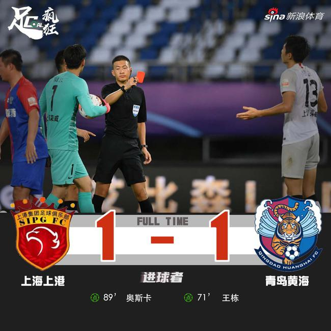 中超-魏震送点+染红奥斯卡点射救主 上港1-1黄海