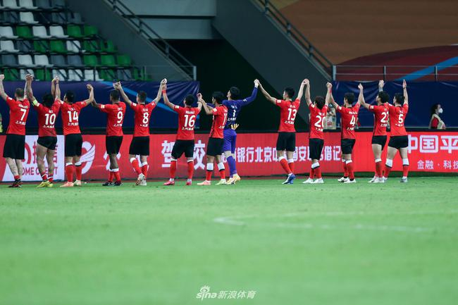 赛后,国安和上港两队球员都来到球迷看台前谢场。