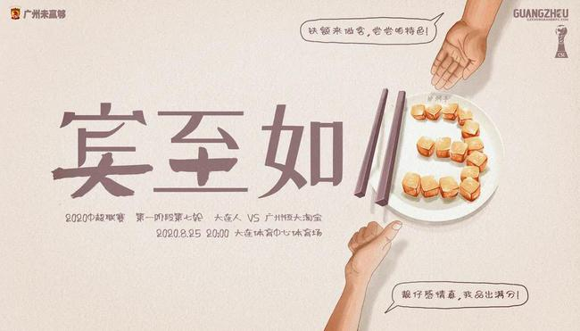 北京时间8月25日,在中超第七轮中,广州恒大将迎战大连人,赛前恒大公布比赛海报,主题为:宾至如归。