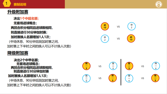 此次公布的中甲赛程赛制,和中超最大的不同在于,中甲第二阶段的赛制有了明确的规定,与此同时,非常关键的中甲的升级和降级规则也已经明确,中甲的冲超名额是1.5个,降级名额则只有2个。