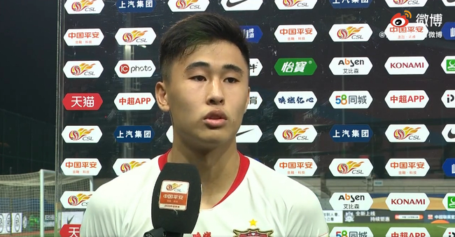 北京时间8月29日,中超联赛第8轮,为深足打入进球的新星戴伟浚接受赛后采访。